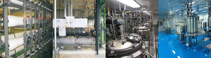 Equipment installation in place, equipment air supply and exhaust ducts, process and material pipelines, water / gas / steam utility pipelines, equipment secondary power distribution, industrial control system integration, etc.