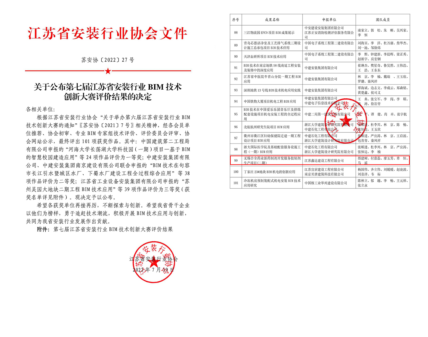 The selection results of the 7th Jiangsu installation industry BIM Technology Innovation Competition were announced