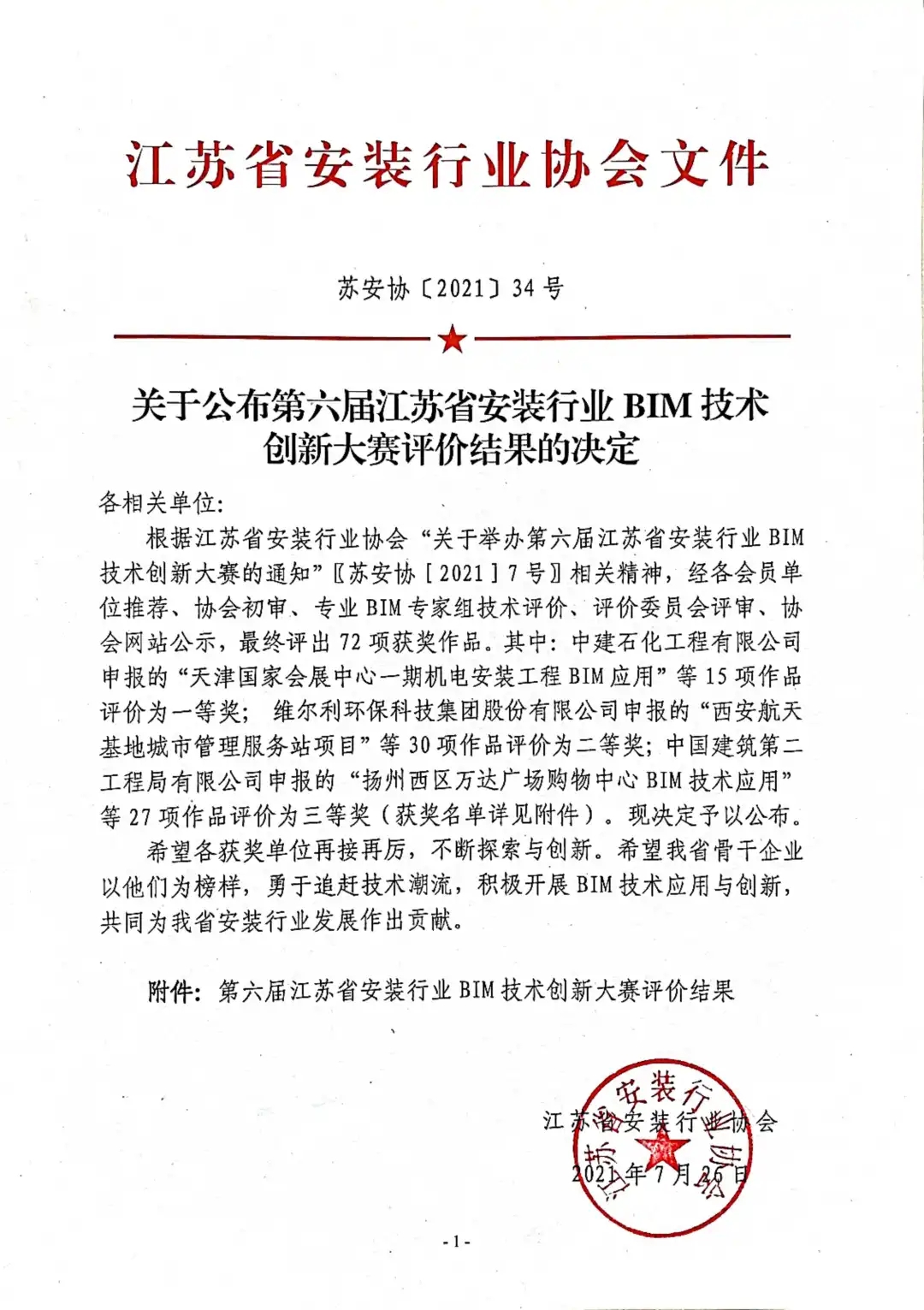 喜訊 | 我司榮獲第六屆江蘇省安裝行業協會BIM創新大賽三等獎