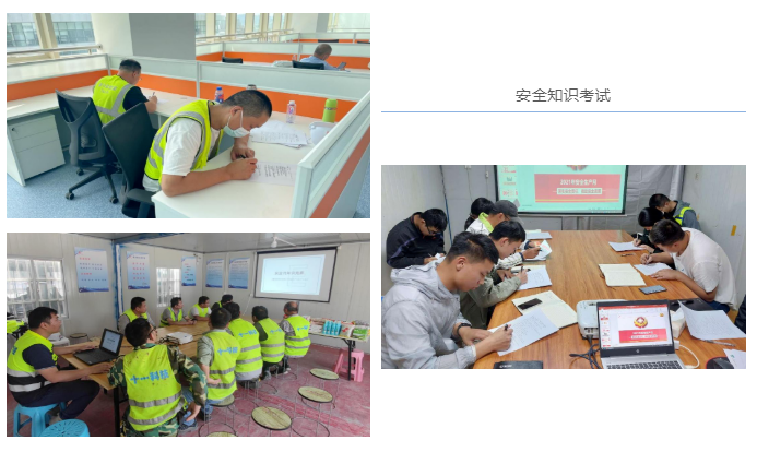 各項目結合項目施工管理實際,通過觀看安全月專題教育片、安全事故案例視頻、安全管理經驗分享等形式實施安全教育專項培訓,并組織全員參與安全知識考試,擴大安全教育的輻射面,增強項目全體成員對安全生產重要性的理解和認知。