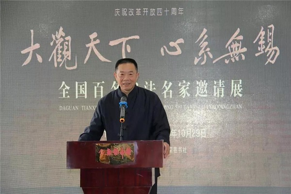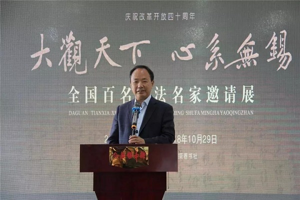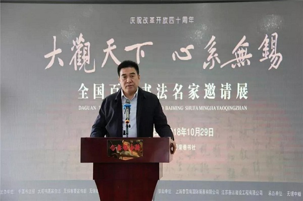 2018年10月21日,由中國書法報、《大觀書畫家》雜志、無錫市委宣傳部、無錫市文學藝術(shù)界聯(lián)合會、無錫市書法家協(xié)會主辦,無錫中糖、無錫市榮巷書社承辦,上海香雪海國際貿(mào)易有限公司、江蘇鑫達建設(shè)工程有限公司贊助的“大觀天下 心系無錫——全國百名書法名家邀請展”在無錫隆重開幕。