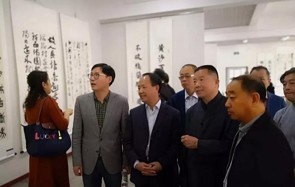 國家行政學院副院長、博士生導師、中國書法家協(xié)會理事周文彰,中國書法傳媒集團董事長、中國書法家協(xié)會理事李世俊,中國書法家第六屆協(xié)會理事王文杰、王春新,無錫市委常委、宣傳部長袁飛,無錫市人大常委會副主任華博雅,無錫市人大常委會原副主任王立人, 無錫市政協(xié)副主席孫志亮,無錫市政府副秘書長吳建昌,無錫市政府副秘書長嚴建媛,無錫市委宣傳部常務(wù)副部長、文聯(lián)黨組書記陸惠玲,江蘇鑫達建設(shè)工程有限公司總經(jīng)理楊東強,新疆、上海、山東、浙江、江蘇、河北等書法協(xié)會、新聞媒體及社會各界人士共500余人參加了開幕式。